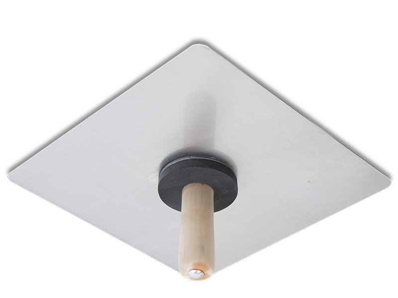 Marshalltown große Kelle: Quadratisch, aus dickwandigem Aluminium. Ideal zum Bereithalten von Gips oder Mörtel. Glättet ohne Furchen. Holzgriff für Komfort. Maße: 254×254 mm.