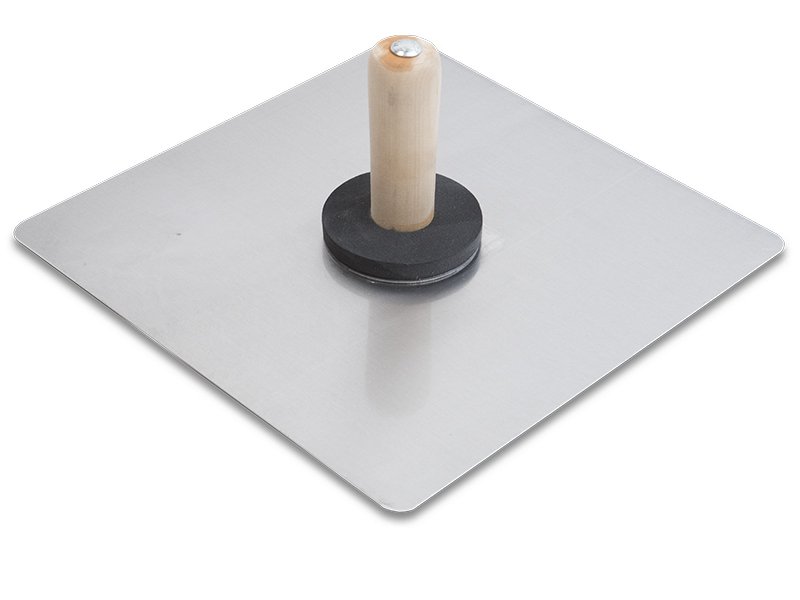 Marshalltown große Kelle: Quadratisch, aus dickwandigem Aluminium. Ideal zum Bereithalten von Gips oder Mörtel. Glättet ohne Furchen. Holzgriff für Komfort. Maße: 343×343 mm.