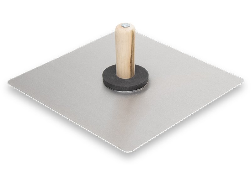 Marshalltown quadratische Kelle aus leicht, langlebigem Magnesium mit Holzgriff und Schwielenschutz. Perfekt zum Halten von Gips/Mörtel. Glättfunktion ohne Furchen/Vertiefungen. Ringe am Blatt halten das Material sicher. Maße: 254×254 mm.