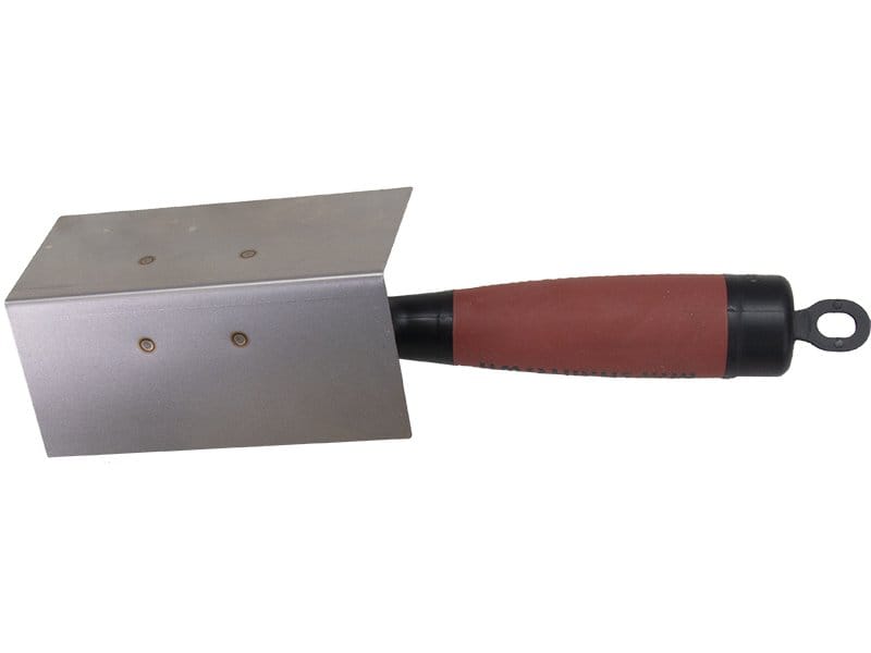 Diese Inneneck-Kelle von Marshalltown hat ein langes Blatt aus Edelstahl. Diese ist aus einem Stück und hat eine 90-Grad-Biegung. Der belastbare Durasoft-Griff mit integriertem Fingerschutz mindert Ermüdungserscheinungen und liegt gut in der Hand. Hervorragendes Werkzeug für die Verwendung überall, wo ein exakter 90 Grad Winkel erforderlich ist.