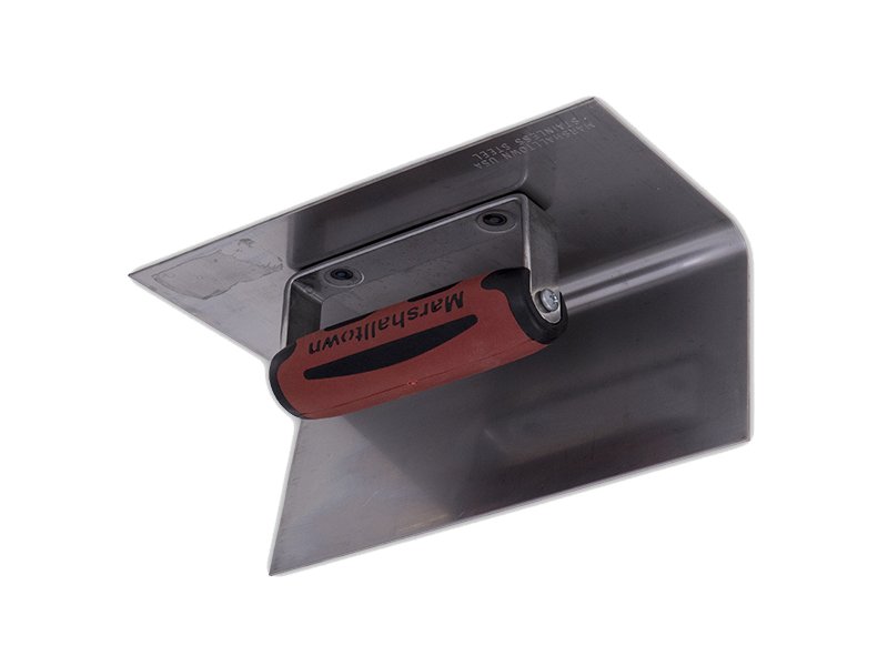 Die Inneneck-Kelle von Marshalltown ist hergestellt aus robustem Edelstahl, mit einem 90-Grad Winkel. Der Radius hat 13mm und die Lippe 102mm. Die stabile Stahlbefestigung ist am belastbaren Durasoft-Griff montiert. Der patentierte Durasoft-Griff mindert Ermüdungserscheinungen, die bei längerem Arbeiten auftreten. Die Eckkelle ist zur Bildung von Innenecken gedacht, ist haltbar und einfach zu reinigen. Ideal für Stufentreppen oder überall, wo eine Ecke benötigt wird.