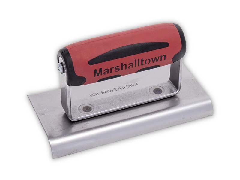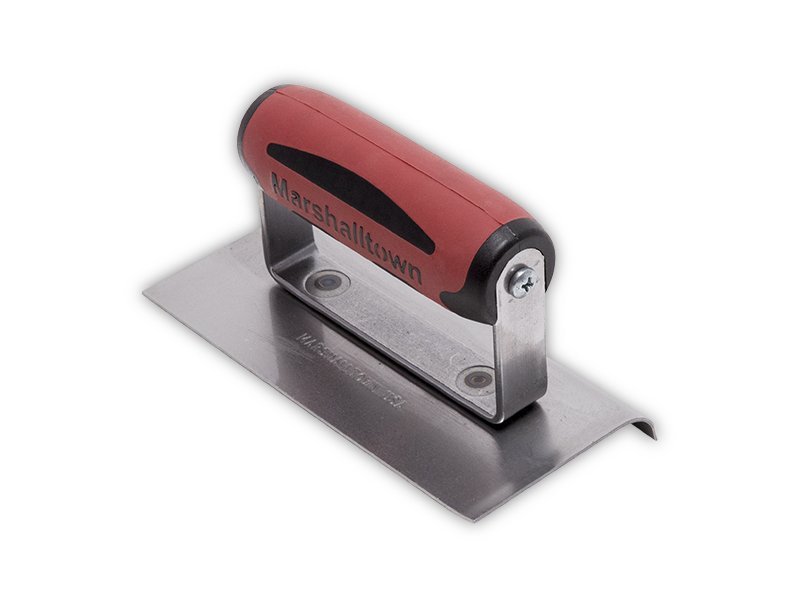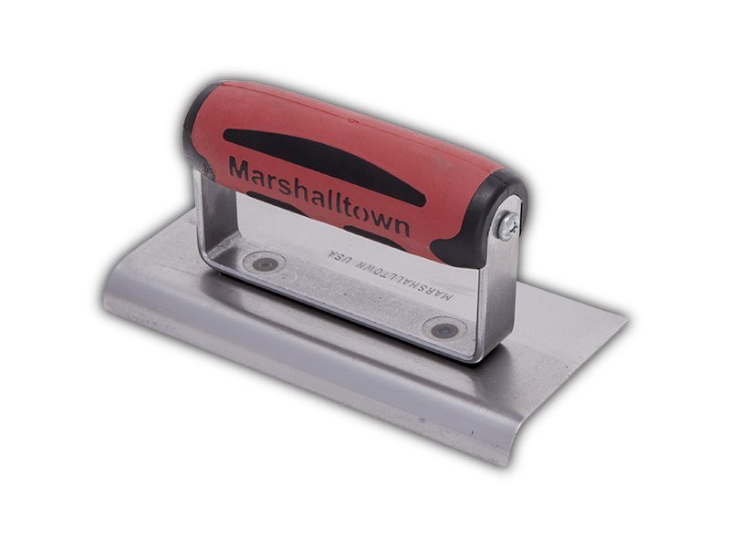 Marshalltown Kantenkelle für glattes Finish an Zement- oder Betonoberflächen. Hochwertiges Carbonstahlblatt, genieteter Griff für Flexibilität. Eine gerade und ein gebogene Seite. Patentierter Durasoft-Griff verhindert Ermüdung. Radius: 10mm, Lippe: 13mm. Maße: 152×102 mm.