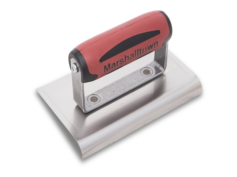 Marshalltown Kantenkelle aus hochwertigem Edelstahl für glatte Betonoberflächen. Verhindert Furchen und Vertiefungen. Perfekt für saubere Abschlüsse an Treppen, Terrassen und Balkonen. Patentierte Durasoft für Komfort. Radius: 6 mm, Lippe: 10 mm. Maße: 152×102 mm.