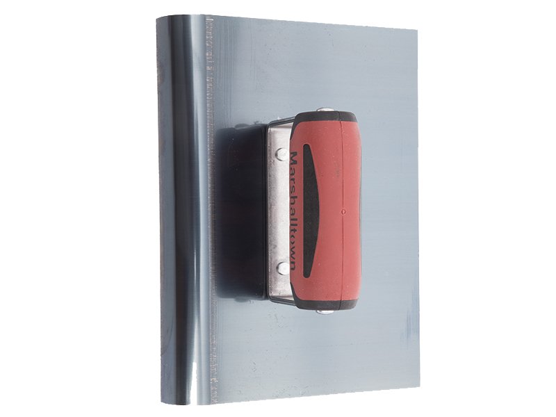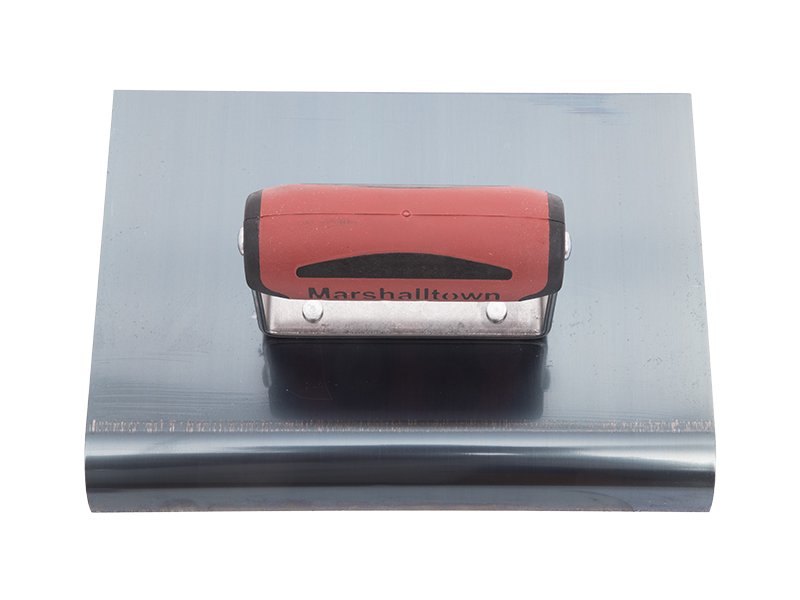 Marshalltown Kantenkelle: Glattes Finish, verhindert Betonabplatzen. Hochwertiges Blaustahlblatt, genieteter Griff für Flexibilität. Ideal für Sichtbeton an Treppen, Terrassen, Balkonen. Patentierter Durasoft-Griff. Radius: 19mm, Lippe: 22mm. Maße: 229×152 mm.