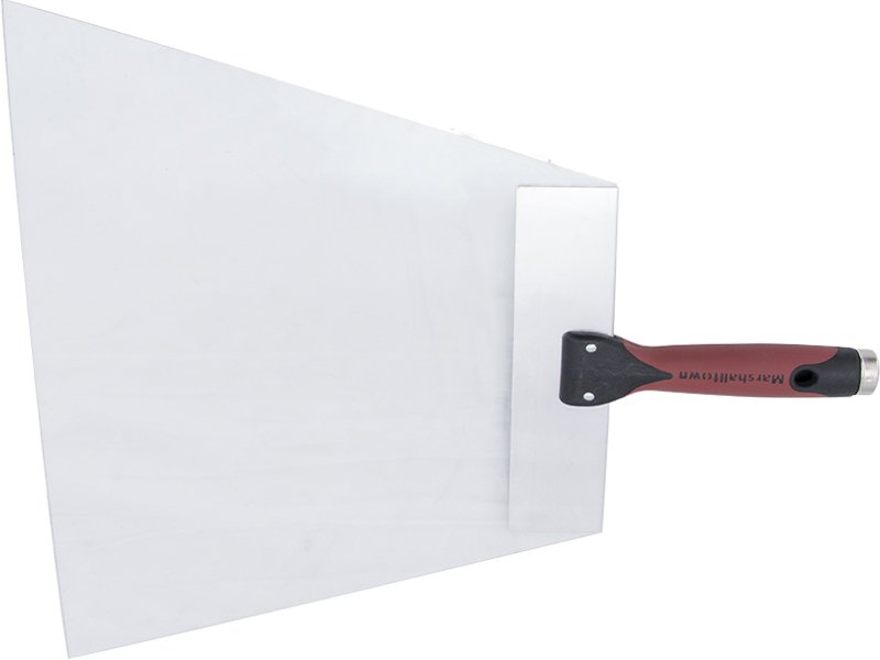 Marshalltown Flächenspachtel: Langer, konischer Spachtel aus schlagfestem Lexan. Durasoft Griff mit Gewinde für Verlängerungsstiel. Metallzwinge und Aufhängeloch. Ideal für enge Bereiche. Länge: 305 mm.