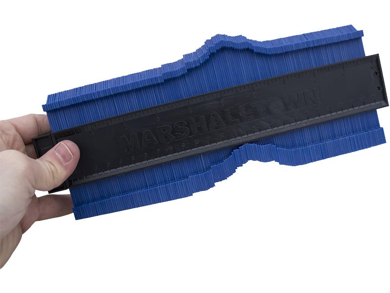 Das Marshalltown Kontourwerkzeug ist eine Hilfe für jeden Handwerker und auch Heimwerker. Die Kunststoffstifte des Kontourwerkzeugs passen sich allen Umrissen an, damit man ohne umständliches Messen die auszuschneidende Form erhält. Das Werkzeug behält die Form. Sie legen das Kontourwerkzeug auf Fliesen, Laminat, Vinyl usw., zeichnen die Form nach, ob rund, oval, eckig oder auch unregelmäßig und können dann die Form ausschneiden. Somit sind dann schwierige Abmessungen ein Kinderspiel. Die Größe des Kontourwerkzeugs ist 102mm breit x 254 mm lang.