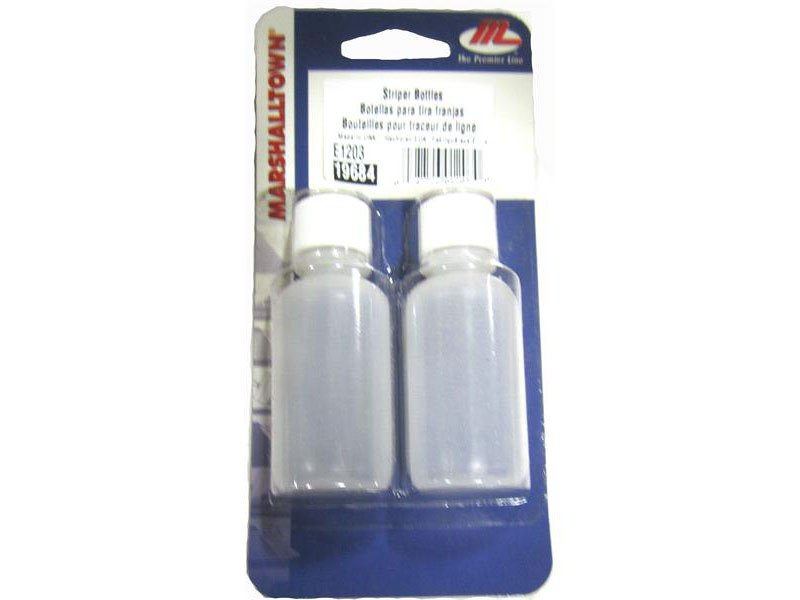 Verschließbare Kunststoffflaschen für Linienstreifer. Kompatibel mit allen Radspitzen-Bausätzen. 2er-Pack, je 30 ml Fassungsvermögen.