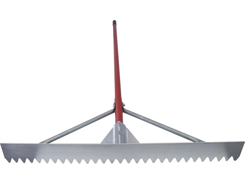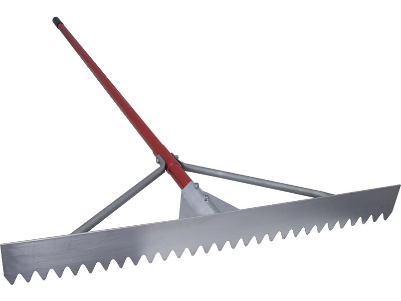 Marshalltown Betonverteiler: Langlebiges Magnesiumblatt mit scharfen Zähnen für reibungsloses Materialpassieren. Verstärkter Aluminiumstiel 1829 mm. Maße: 813×76 mm.