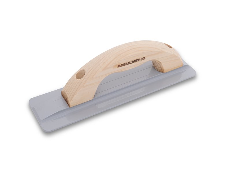 Marshalltown Handglätter aus hartem, leichtem Magnesium für glatte Oberflächen. Empfohlen für Luftporenbeton. Robuster, großer, runder Holzgriff. Auswechselbarer Griff. Maße: 305×79 mm.