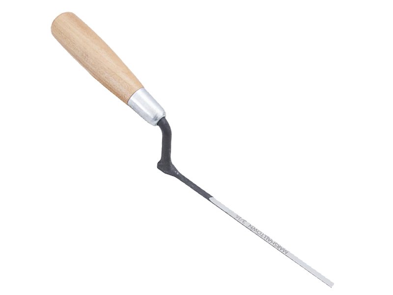Marshalltown Fugenkelle: Aus einem Stück Hartstahl geschmiedet für Langlebigkeit. Hoher Schaft für gute Handfreiheit. Hartholzgriff liegt gut in der Hand. Präzise und kontrollierte Bearbeitung von Mörtel. Ideal für Maurer und Künstler. Maße: 165×4 mm.