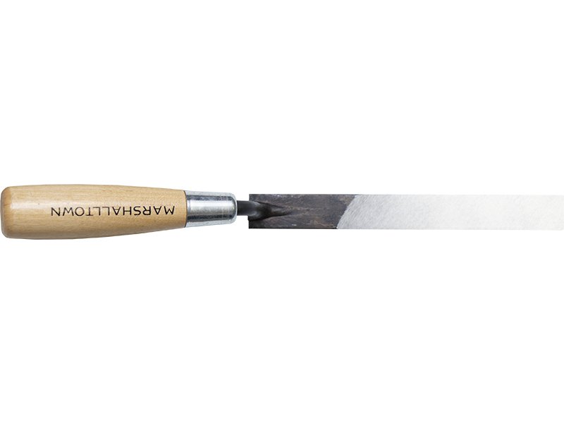 Marshalltown Fugenkelle: Aus einem Stück Hartstahl geschmiedet für Langlebigkeit. Hoher Schaft für gute Handfreiheit. Hartholzgriff liegt gut in der Hand. Präzise und kontrollierte Bearbeitung von Mörtel. Ideal für Maurer und Künstler. Maße: 165×19 mm.