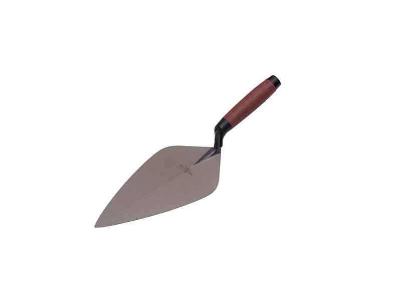 Hochwertige Maurerkellen für langlebige und professionelle Bearbeitung von Ziegel, Blöcken und Mauerwerk. Flexibel, robuster DuraKork Griff, spitz zulaufendes „Wide London Style“ Blatt. Maße: 279x146mm.
