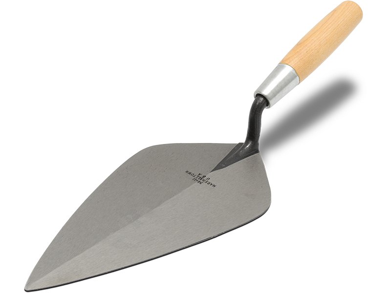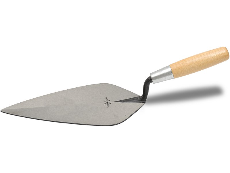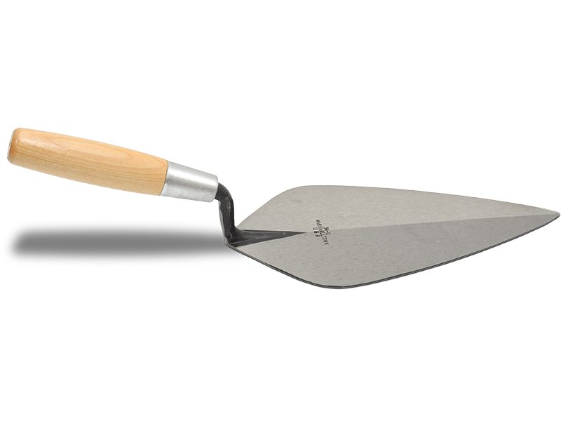 Hochwertige Maurerkellen für langlebige und professionelle Bearbeitung von Ziegel, Blöcken und Mauerwerk. Flexibel, sicherer Holzgriff, spitz zulaufendes „Wide London Style“ Blatt. Maße: 267×146 mm.