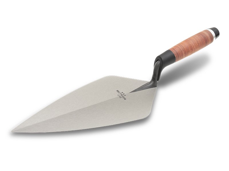 Hochwertige Maurerkellen für langlebige und professionelle Bearbeitung von Ziegel, Blöcken und Mauerwerk. Flexibel, langlebiger Ledergriff, spitz zulaufendes „Wide London Style“ Blatt. Maße: 267x146mm.