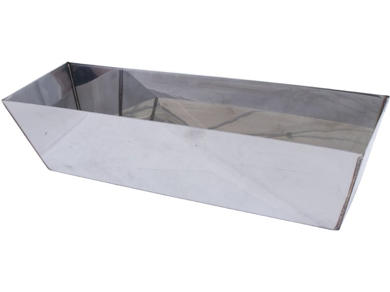 Die Maurerpfanne von Marshalltown ist hergestellt aus Edelstahl. Die Maurerpfanne wird verwendet, um Material für Ausbesserungsarbeiten griffbereit zu haben, gerade wenn man an der Decke arbeitet. Innen ist Unterseite abgerundet, das macht es einfach, das Material auf den Spachtel zu bringen, außerdem sind keine Ecken, wo sich Material sammeln kann. Die Ecken sind geschweißt, um glatte, nahtlose Innenecken herzustellen. Die Kanten oben sind geschärft, damit man Schaber, Spachtel oder Kellen besser reinigen kann.