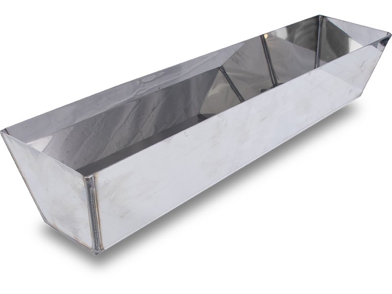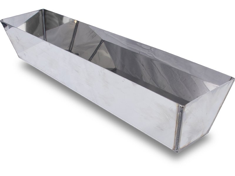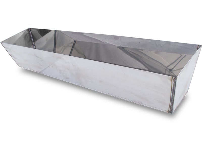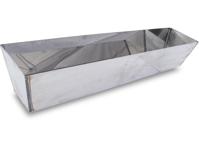 Die Maurerpfanne von Marshalltown ist hergestellt aus Edelstahl. Die Maurerpfanne wird verwendet, um Material für Ausbesserungsarbeiten griffbereit zu haben, gerade wenn man an der Decke arbeitet. Innen ist Unterseite abgerundet, das macht es einfach, das Material auf den Spachtel zu bringen, außerdem sind keine Ecken, wo sich Material sammeln kann. Die Ecken sind geschweißt, um glatte, nahtlose Innenecken herzustellen. Die Kanten oben sind geschärft, damit man Schaber, Spachtel oder Kellen besser reinigen kann.