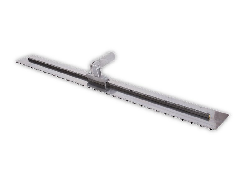 Der Mehrspur-Bodenglätter von Marshalltown ist aus geschweißtem und genietetem Edelstahl hergestellt. Dieser Bodenglätter wird überall verwendet, wo gleichmäßige Rillen notwendig sind, z.B. beim Fräsen von Sicherheitsrampen. Die 2-in-1-Halterung ermöglicht die Verwendung von allen Kippgelenken. Auf dem Bodenglätter ist ein Gewinde-Kippgelenk vormontiert, somit kann man alle Gewinde-Stiele nutzen. Die Rillen sind 6mm breit und 6mm tief, der Abstand zwischen den Rillen hat 19mm.