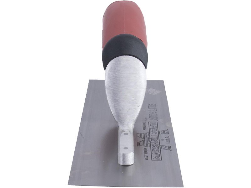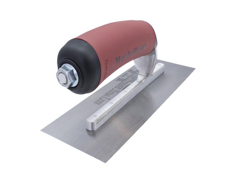 Die Glättkelle von Marshalltown ist hergestellt aus hochwertigem Carbonstahl, sie sehr robust, somit hat man lange Freude an ihr. Das Carbonstahlblatt ist fest mit der Aluminiumgusshalterung verbunden, die einen Vierkant-Schaft hat, damit sich die Kelle nicht dreht. Diese spezielle Kelle ist recht kompakt, damit man die Fläche mit mehr Druck bearbeiten kann, vor allem geeignet für Treppen, Fensterbänke, enge Stellen oder dekorative Flächen. Der belastbare Durasoft Griff ist sicher an die Halterung/Stütze angebracht. Er ist liegt gut in der Hand, das ermöglicht dem Handwerker den ganzen Tag zu arbeiten, ohne das seine Hände schmerzen. Der Griff ist auswechselbar, man kann wählen zwischen einem Holzgriff und einem neuen Durasoft Griff.