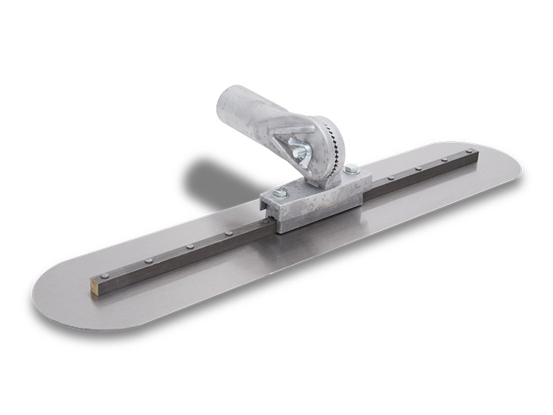 Hochwertiger Multi-Mount Bodenglätter aus Carbonstahl mit abgerundeten Enden für präzises Bearbeiten von Winkeln. Inklusive verstellbares Gewinde-Kippgelenk für flexible Verwendung mit verschiedenen Gewindestielen. Maße: 762×127 mm.