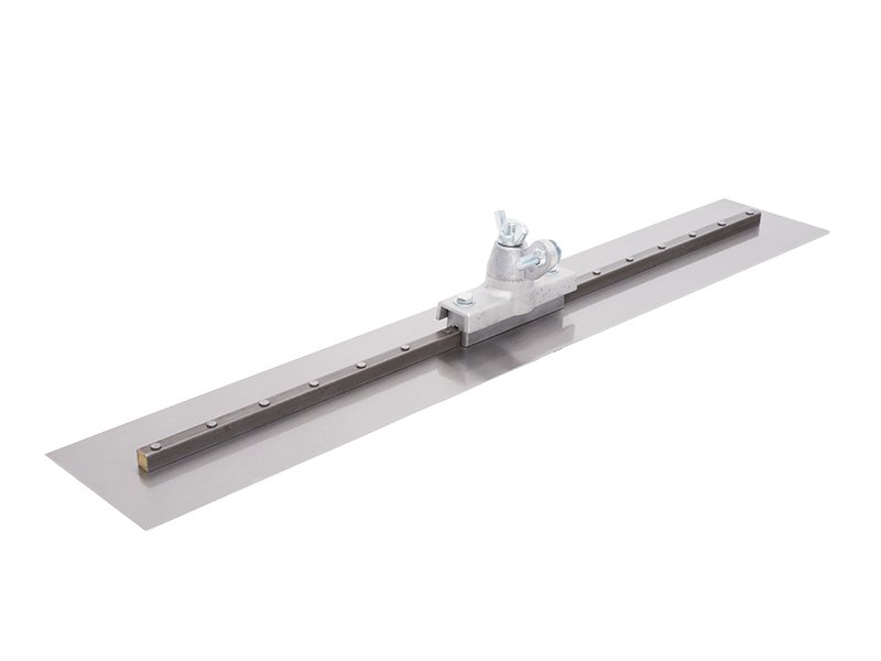 Marshalltown Multi-Mount Bodenglätter aus hochwertigem Carbonstahl. Eckige Enden für präzises Bearbeiten von Winkeln. Inklusive Vollwinkel-Kippgelenk. Ohne Stiel. Maße: 762×127 mm.