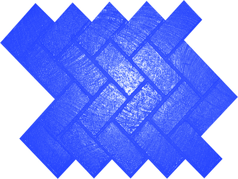 Marshalltown Betonstempel „New Herringbone Brick „: Harte Kunststoffkonstruktion, Stempel stellt schmale, raffinierte Rechtecke von Ziegeln im 90-Grad-Winkel her für eine enge, kompakte Optik, 6-13 mm tiefe Fugenlinien, blau und flexibel. Maße: 1168×660 mm.