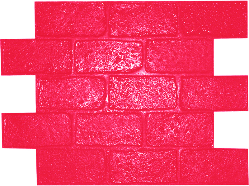 Marshalltown Betonstempel „Old Chicago Running Bond Brick „: Harte Kunststoffkonstruktion, Stempel stellt das Aussehen von natürlichem Backsteinpflaster her, 6-13 mm tiefe Fugenlinien, blau und starr. Maße: 775×394 mm.