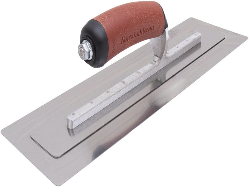 Das flexibles Blatt der Marshalltown Permeable Glättekelle ist fest mit einer Edelstahlplatte verbunden. Diese Kelle ermöglicht eine leichtere Auftragung von Deckenanstrichen, Trockenbaumasse und auch Epoxidmasse. Das Blatt der Glättkelle ist aus hochwertigem Edelstahl mit abgerundeten Ecken, die verhindern, dass man die Oberfläche durch Rillen oder Furchen beschädigt. Die Kelle ist leicht, aber sehr robust, somit hat man lange Freude an ihr. Besonders hervorzuheben ist, dass die erste Niete vorne deutlich dicker ist als die anderen, denn dort findet auch die meiste Belastung statt. Der gebogene DuraKork Griff ist sicher an die Halterung/Stütze angebracht. Er vermindert durch seine ergonomische Form Ermüdungserscheinungen und bietet einen verbesserten Komfort beim Arbeiten. Das ermöglicht dem Handwerker den ganzen Tag zu arbeiten, ohne das seine Hände schmerzen. Der Griff ist auswechselbar, man kann ihn gegen einen DuraKork Griff, einen Durasoft Griff, einen Holzgriff oder einen Ledergriff ausgetauschten.
