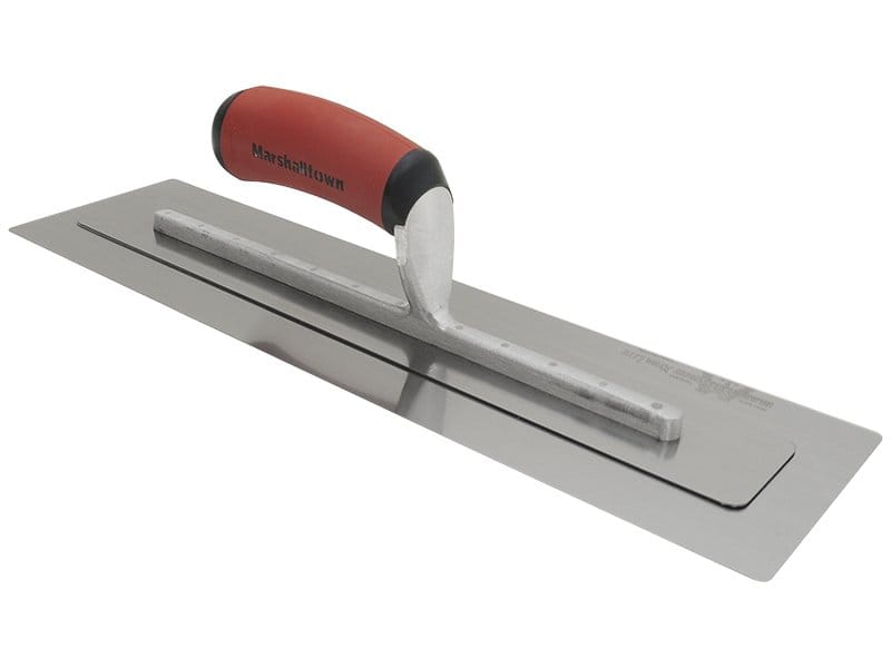 Das flexibles Blatt der Marshalltown Permeable Glättekelle ist fest mit einer Edelstahlplatte verbunden. Diese Kelle ermöglicht eine leichtere Auftragung von Deckenanstrichen, Trockenbaumasse und auch Epoxidmasse. Das Blatt der Glättkelle ist aus hochwertigem Edelstahl mit abgerundeten Ecken, die verhindern, dass man die Oberfläche durch Rillen oder Furchen beschädigt. Die Kelle ist leicht, aber sehr robust, somit hat man lange Freude an ihr. Besonders hervorzuheben ist, dass die erste Niete vorne deutlich dicker ist als die anderen, denn dort findet auch die meiste Belastung statt. Der gebogene patentierte Durasoft Griff ist sicher an die Halterung/Stütze angebracht. Er vermindert durch seine ergonomische Form Ermüdungserscheinungen und bietet einen verbesserten Komfort beim Arbeiten. Das ermöglicht dem Handwerker den ganzen Tag zu arbeiten, ohne das seine Hände schmerzen. Der Griff ist auswechselbar, man kann ihn gegen einen Durasoft Griff, einen Holzgriff oder einen Ledergriff ausgetauschten.