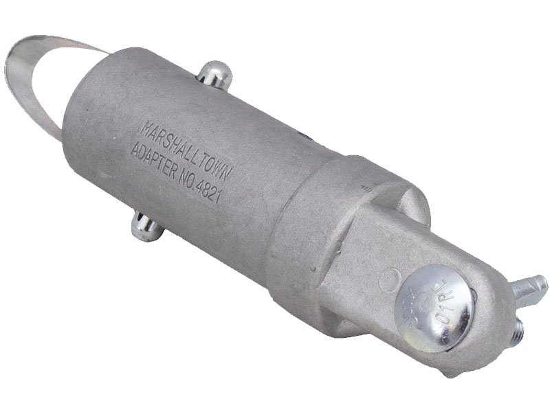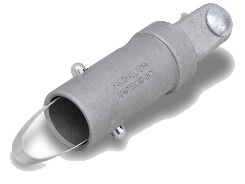 Marshalltown Adapter verbindet Pfostenanschlüsse mit einem Druckknopfstiel. Passend für 35mm und 44mm Griffe. Ideal für Bodenglätter, Fresnos, Besen usw. Kompatibel mit verschiedenen Werkzeugen und Stielen. Länge: 184 mm.