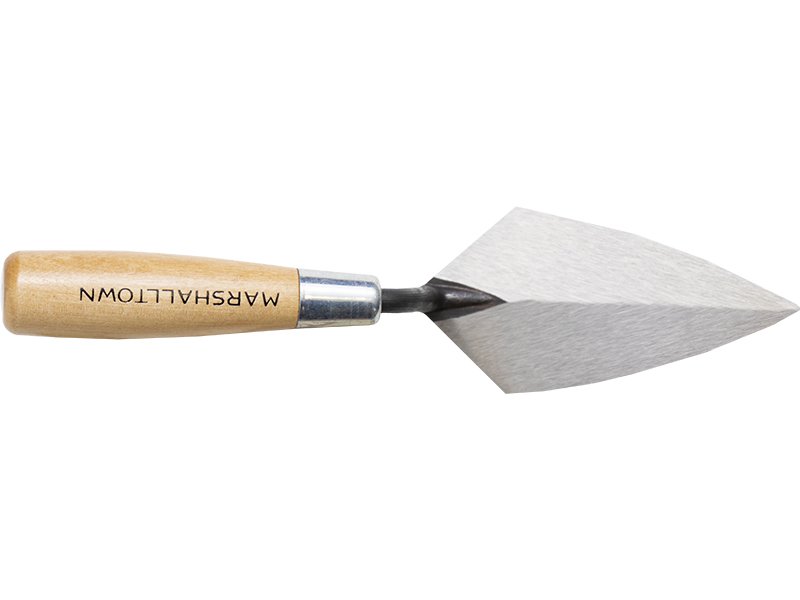 Die Marshalltown Spitzkelle: Ideal zum Füllen von Hohlräumen und Ausbessern von Mörtelfugen. Aus einem Stück Carbonstahl geschmiedet. Robuster Hartholzgriff für Langlebigkeit. Extrahart, geschliffen und poliert. Maße: 114×57 mm.