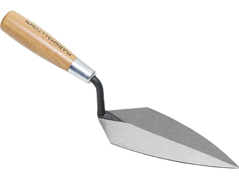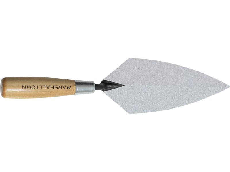 Die Marshalltown Spitzkelle: Ideal zum Füllen von Hohlräumen und Ausbessern von Mörtelfugen. Aus einem Stück Carbonstahl geschmiedet. Robuster Hartholzgriff für Langlebigkeit. Extrahart, geschliffen und poliert. Maße: 152×70 mm.