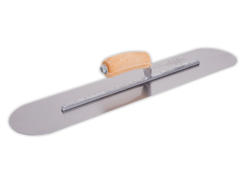 Hochwertige Glättkelle aus robustem Edelstahl für Nivellieren, Verteilen und Veredeln von Wänden und Böden. Keine Furchen oder Rillen dank abgerundeter Enden. Bequemer, pflegeleichter Holzgriff. Maße: 610×127 mm.