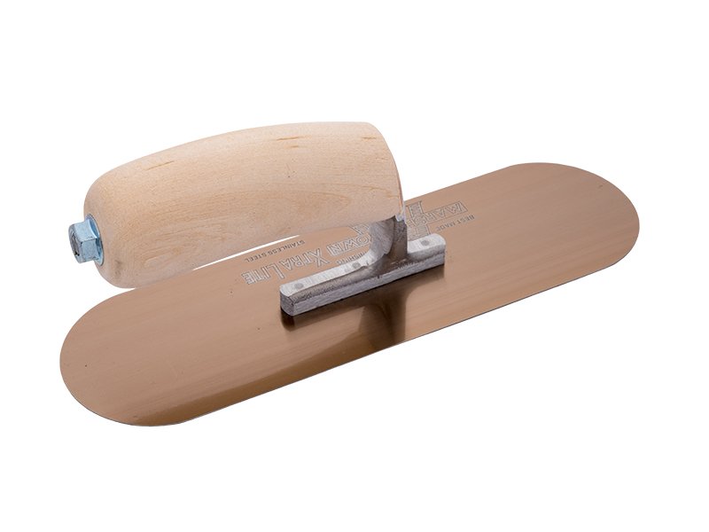 Hochwertige, vollabgerundete Glättkelle aus robustem Goldstahl. Perfekt zum Nivellieren, Verteilen und Veredeln von Wänden und Böden. Keine Furchen oder Rillen auf der Oberfläche dank abgerundeter Enden. Gebogener Holzgriff für komfortables Arbeiten. Maße: 254×76 mm.
