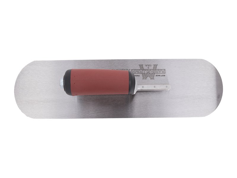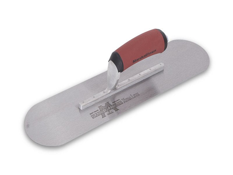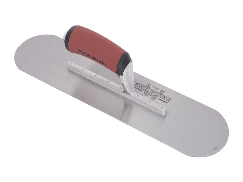 Die vollabgerundete Glättkelle von Marshalltown ist hergestellt aus robustem Stahl, die durch Hartverchromung Gipsbrand reduziert. Sie wird zum Nivellieren, Verteilen und Veredeln von Wände und Böden verwendet. Das Stahlblatt ist mit 8 sichtbaren Nieten fest mit der Aluminiumgusshalterung verbunden, die einen Vierkant Schaft hat, damit sich die Kelle nicht dreht. Diese Glättkelle von Marshalltown hat den Vorteil, dass man keine Furchen oder Rillen auf der zu bearbeitenden Oberfläche hinterlässt, da die Enden abgerundet sind. Der patentierte, gebogene Durasoft Griff ist sicher an die Halterung/Stütze angebracht, er ist sehr pflegeleicht und liegt gut in der Hand, das ermöglicht dem Handwerker den ganzen Tag zu arbeiten, ohne das seine Hände schmerzen. Er ist ganz einfach auswechselbar durch einen Holzgriff, DuraKork Griff oder einen anderen Durasoft Griff.