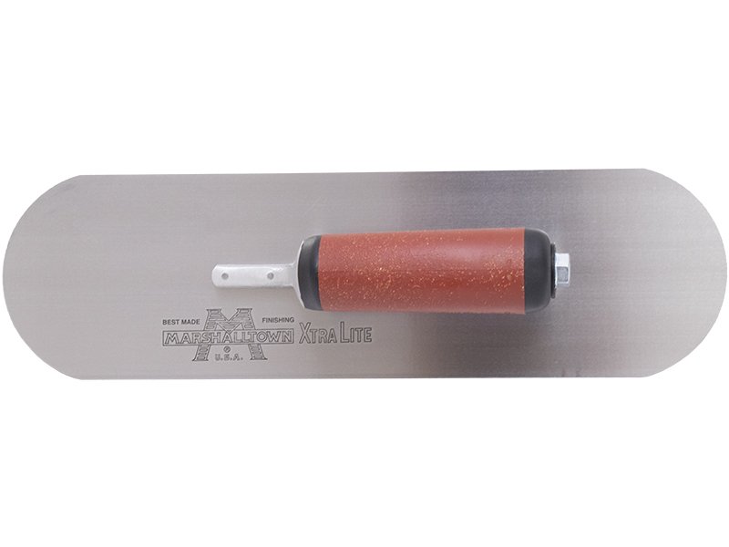 Die vollabgerundete Glättkelle von Marshalltown ist hergestellt aus robustem Carbonstahl, somit hat man lange Freude an ihr. Sie wird zum Nivellieren, Verteilen und Veredeln von Wände und Böden verwendet. Das Blaustahlblatt ist mit 3 sichtbaren Nieten fest mit der Aluminiumgusshalterung verbunden, die einen Vierkant Schaft hat, damit sich die Kelle nicht dreht. Diese Glättkelle von Marshalltown hat den Vorteil, dass man keine Furchen oder Rillen auf der zu bearbeitenden Oberfläche hinterlässt, da die Enden abgerundet sind. Besonders hervorzuheben ist, dass die erste Niete am Blatt vorne deutlich dicker ist als die anderen, denn dort findet auch die meiste Belastung statt. Der DuraKork Griff ist sicher an die Halterung/Stütze angebracht, er ist sehr pflegeleicht und liegt gut in der Hand, das ermöglicht dem Handwerker den ganzen Tag zu arbeiten, ohne das seine Hände schmerzen. Er ist ganz einfach auswechselbar durch einen Holzgriff, Durasoft Griff oder einen anderen DuraKork Griff.