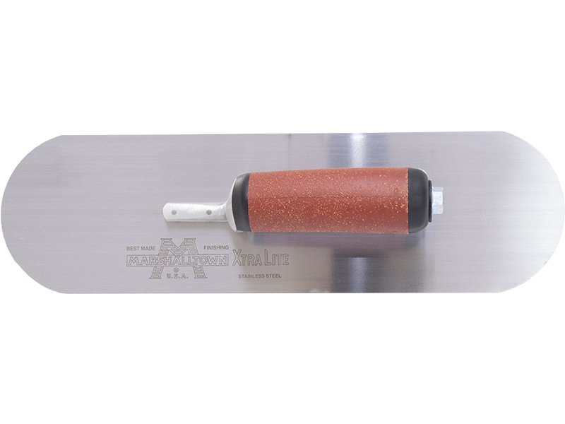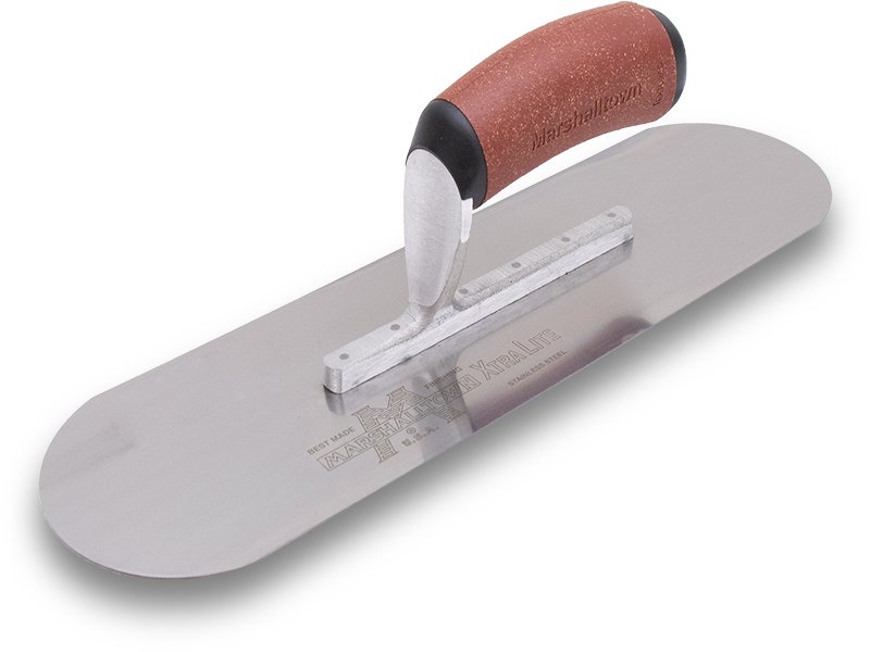 Marshalltown vollabgerundete Glättkelle: Robuster Edelstahl, kein Verursachen von Furchen oder Rillen. Pflegeleichte Durakork Griff. Maße: 356×76 mm.