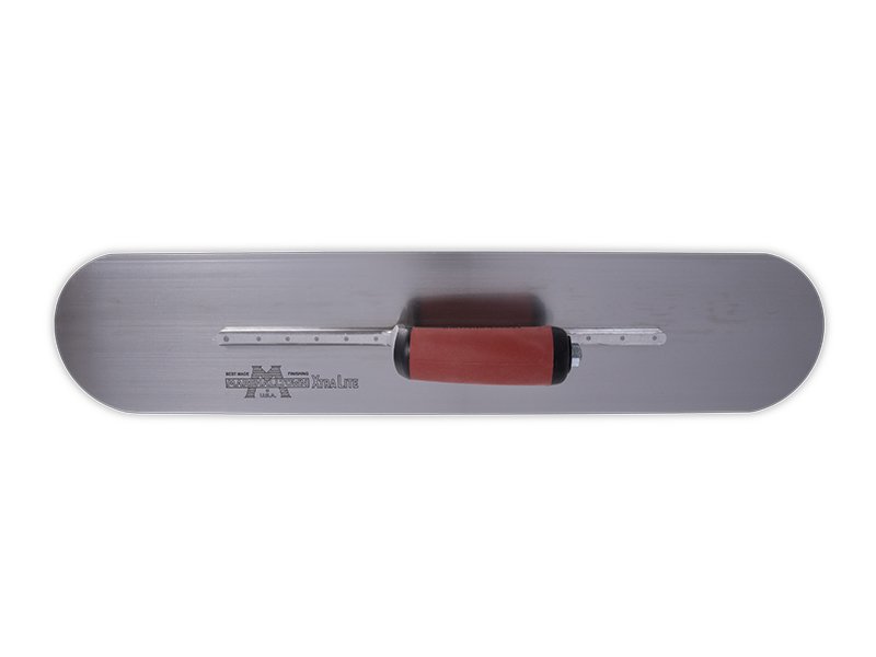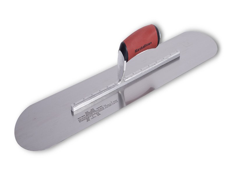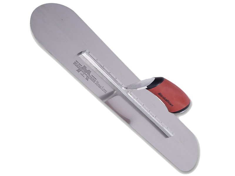 Die vollabgerundete Glättkelle von Marshalltown ist hergestellt aus robustem Carbonstahl, somit hat man lange Freude an ihr. Sie wird zum Nivellieren, Verteilen und Veredeln von Wände und Böden verwendet. Das Carbonstahlblatt mit 14 sichtbaren Nieten fest mit der Aluminiumgusshalterung verbunden, die einen Vierkant Schaft hat, damit sich die Kelle nicht dreht. Diese Glättkelle von Marshalltown hat den Vorteil, dass man keine Furchen oder Rillen auf der zu bearbeitenden Oberfläche hinterlässt, da die Enden abgerundet sind. Besonders hervorzuheben ist, dass die erste Niete am Blatt vorne deutlich dicker ist als die anderen, denn dort findet auch die meiste Belastung statt. Der patentierte Durasoft Griff, liegt gut in der Hand und mindert Ermüdungserscheinungen beim Arbeiten. Er ist ganz einfach auswechselbar durch einen Holzgriff, DuraKork Griff oder einen anderen Durasoft Griff.