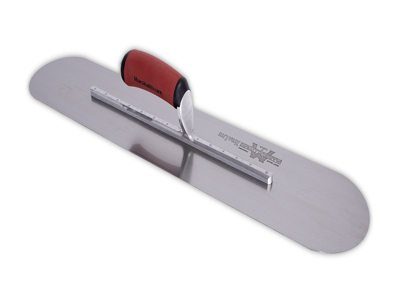 Die vollabgerundete Glättkelle von Marshalltown ist hergestellt aus robustem Carbonstahl, somit hat man lange Freude an ihr. Sie wird zum Nivellieren, Verteilen und Veredeln von Wände und Böden verwendet. Das Carbonstahlblatt mit 14 sichtbaren Nieten fest mit der Aluminiumgusshalterung verbunden, die einen Vierkant Schaft hat, damit sich die Kelle nicht dreht. Diese Glättkelle von Marshalltown hat den Vorteil, dass man keine Furchen oder Rillen auf der zu bearbeitenden Oberfläche hinterlässt, da die Enden abgerundet sind. Besonders hervorzuheben ist, dass die erste Niete am Blatt vorne deutlich dicker ist als die anderen, denn dort findet auch die meiste Belastung statt. Der patentierte Durasoft Griff, liegt gut in der Hand und mindert Ermüdungserscheinungen beim Arbeiten. Er ist ganz einfach auswechselbar durch einen Holzgriff, DuraKork Griff oder einen anderen Durasoft Griff.