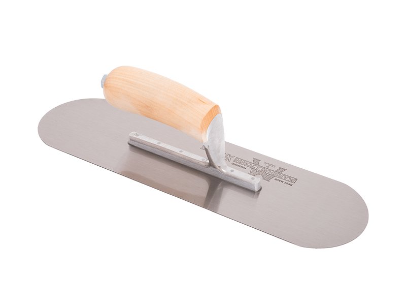 Hochwertige, vollabgerundete Glättkelle aus Carbonstahl. Perfekt zum Nivellieren, Verteilen und Veredeln von Wänden und Böden. Keine Furchen oder Rillen auf der Oberfläche dank abgerundeter Enden. Robuster Holzgriff. Maße: 406×114 mm.