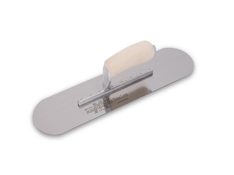 Marshalltown vollabgerundete Glättkelle: Robuster Edelstahl, kein Verursachen von Furchen oder Rillen. Pflegeleichte Holzgriff. Maße: 406×102 mm.
