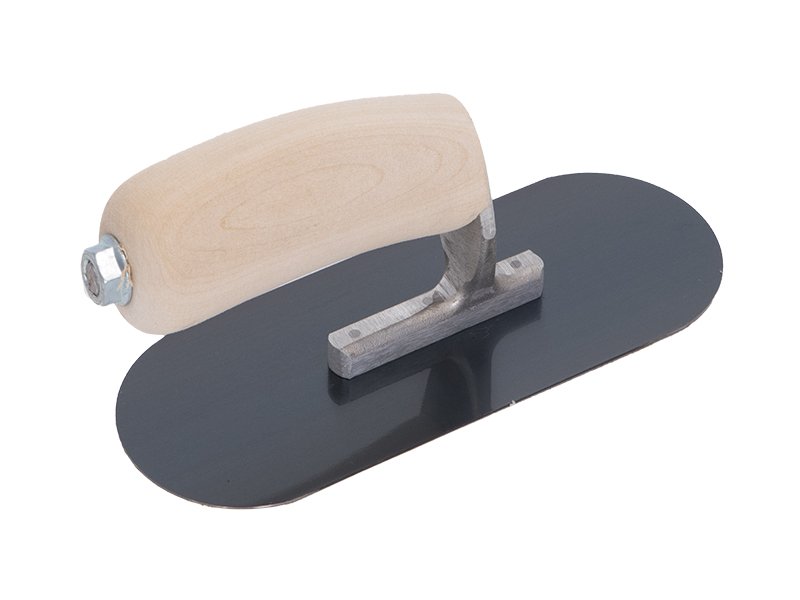 Vollabgerundete Glättkelle aus Blaustahl von Marshalltown für präzises Nivellieren und Verteilen. Keine Furchen oder Rillen auf der Oberfläche dank abgerundeter Enden. Bequemer, pflegeleichter und austauschbarer Holzgriff. Maße: 254×76 mm.