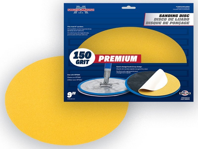 Marshalltown gelbe Schleifscheiben: Ideal für Trockenbau- oder Putzschleifprojekte. Hochgebrannte Aluminiumoxid-Körnung, passend für 229mm Schleifmaschinen. Packung mit 5 Scheiben, 150er Körnung.