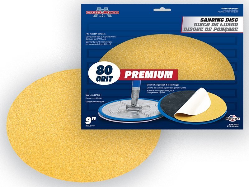 Marshalltown gelbe Schleifscheiben: Ideal für Trockenbau- oder Putzschleifprojekte. Hochgebrannte Aluminiumoxid-Körnung, passend für 229mm Schleifmaschinen. Packung mit 5 Scheiben, 80er Körnung.