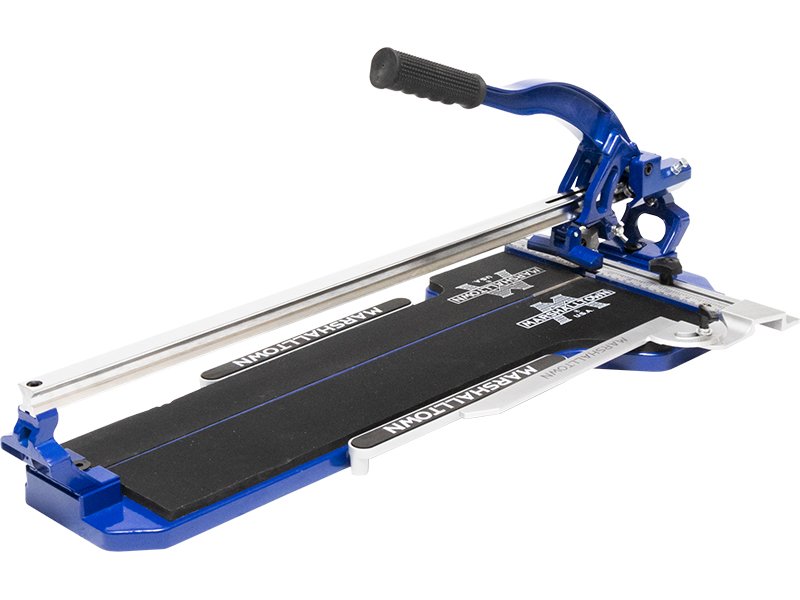 Professioneller Marshalltown Pro Fliesenschneider für Keramik-, Porzellan- und Mosaikfliesen bis 630 mm Länge und 16 mm Dicke. Stabiles Schienensystem, höhenverstellbares Ritzrad.