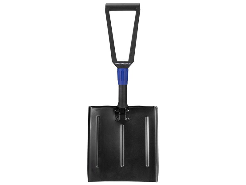 Marshalltown Proscape Eckige Klappschaufel aus Carbonstahl. 90-Grad-Winkel oder eingeklappte Position möglich. Ultraflaches, kompaktes Design mit einer Gesamtlänge von 584 mm.