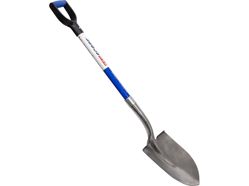 Abgerundete Marshalltown Proscape Schaufel für Profis aus Edelstahl. Stahlverstärkter Holzstiel mit komfortablem D-Griff. Länge: 762 mm.