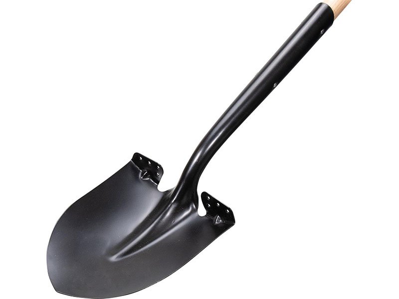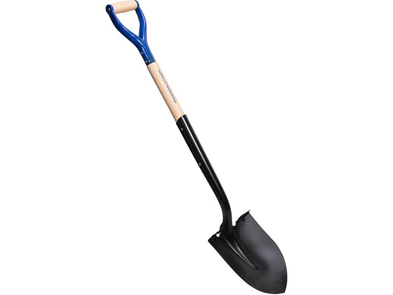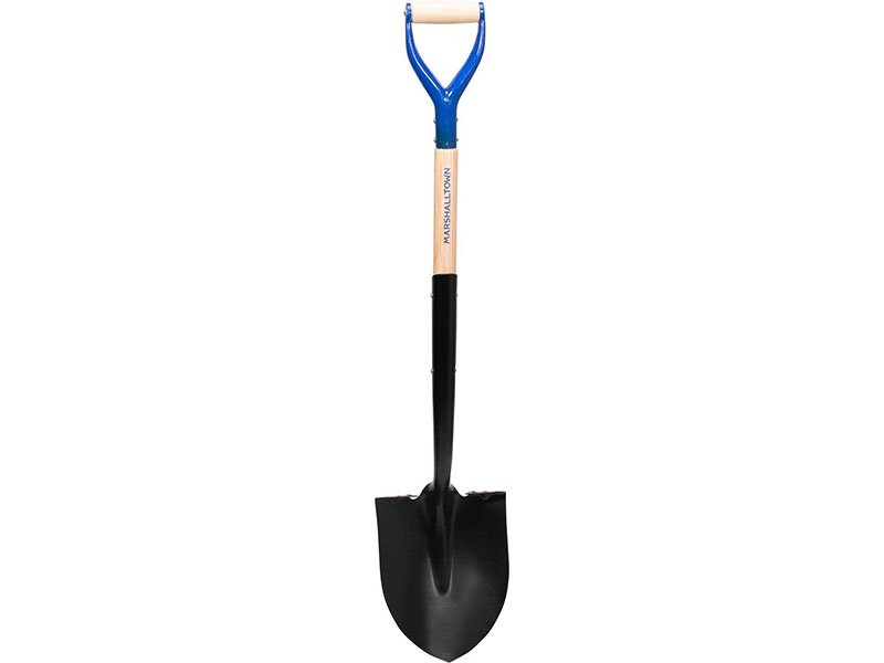 Marshalltown Proscape Schaufel mit abgerundetem, robustem Blatt aus gehärtetem Stahl der Stärke 12 mit Pulverbeschichtung. 787 mm langer Holzstiel mit D-Griff.