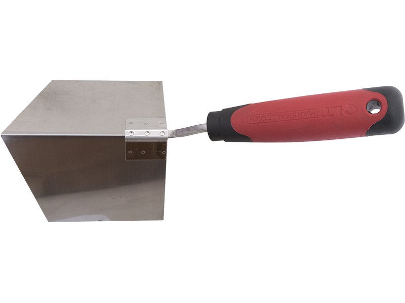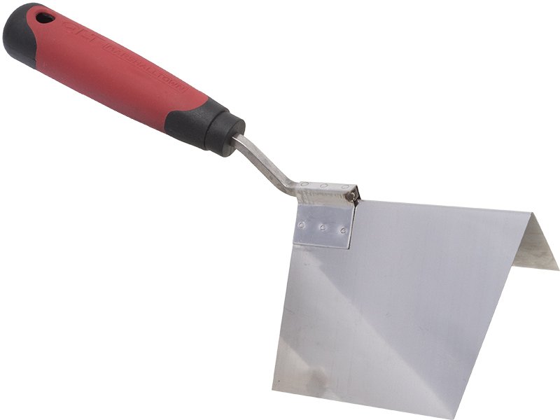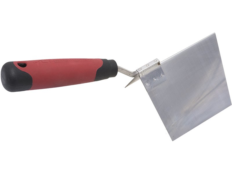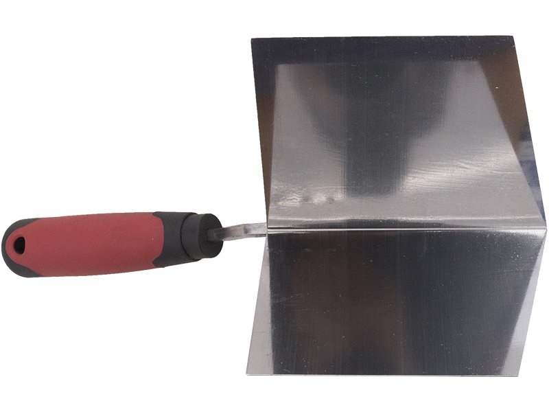 Die Ausseneck-Kelle von Marshalltown QLT ist hergestellt aus einem Blatt robusten Edelstahls, das einen eckigen Winkel von 80 Grad hat, sich aber bis 90 Grad biegen lässt. Die Eckkelle ist zur Bildung von Außenecken gedacht und ist haltbar und einfach zu reinigen. Wird vor allem von Trockenbauern und Verputzern zum Einbetten des Netzbandes und/oder zum Glätten der letzten Materialschicht auf die abgeklebte Ecke verwendet. Der Kunststoffgriff liegt gut in der Hand und ist leicht zu reinigen. Am Griff ist eine Aufhänge-Öse zur leichteren Aufbewahrung.