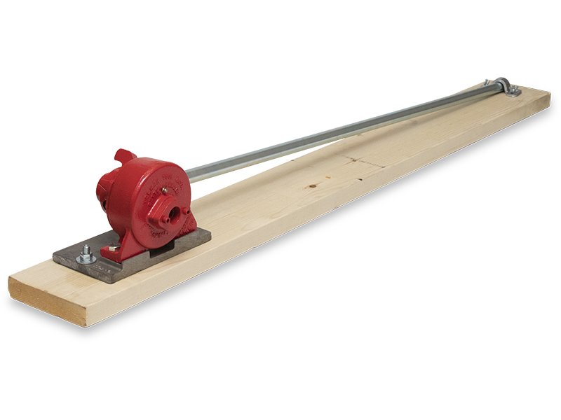 Der Marshalltown QLT Bewehrungsschneider und -bieger schneidet und biegt zuverlässig Bewehrungsstahl bis zu #5 (⅝“) oder Güteklasse 60. Dieses Betonwerkzeug verfügt über offene Backen zum einfachen Einlegen von Bewehrungsstäben. Er hat zwei offene Schneidschlitze und einen 1372 mm langen Griff. Alles ist auf einem stabilen Holzbrett befestigt, um die Stabilität beim Schneiden zu erhöhen. Am Brett selbst ist eine Kette mit einem runden Kettenglied, wo man den Griff an der unteren Stange befestigen kann, damit der Schneider transportiert werden kann.