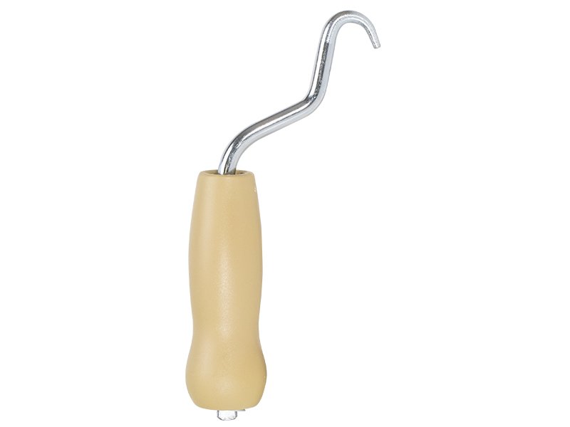 Bindedrahtzieher mit gebogenem Stahlhaken für enge Räume. Haltbares Design, bequemer Kunststoffgriff. Länge: 178 mm.